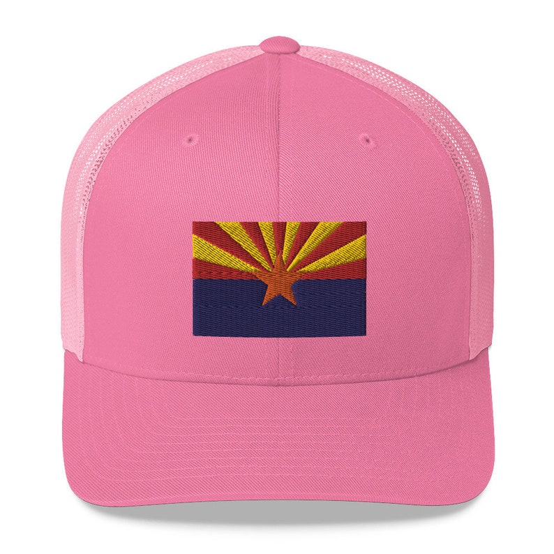 These truckers were constructed with indigo its a stuctured 5 panel built with gold mesh and snapback. The arizona flag was formally adopted on january 25, 1917. The top half consists of thirteen alternating yellow and red rays which represent america's thirteen original colonies. There are 236 arizona flag hats for sale on etsy, and they cost $24.48 on average. A great dad hat, mens hat, or hat for women.